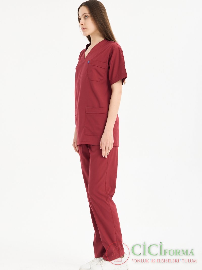 Bayan Bordo Likralı Hastane Forması