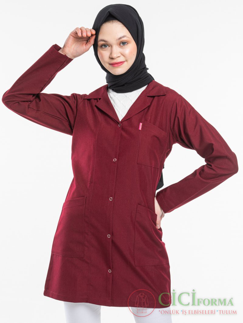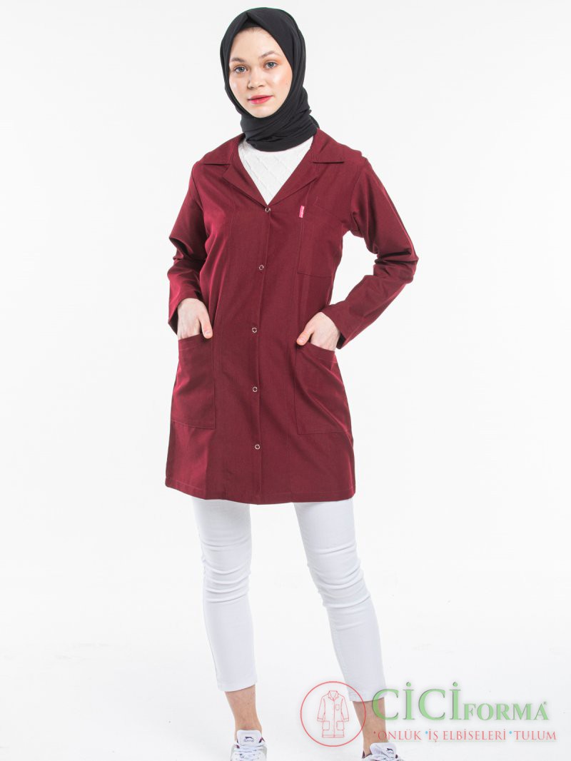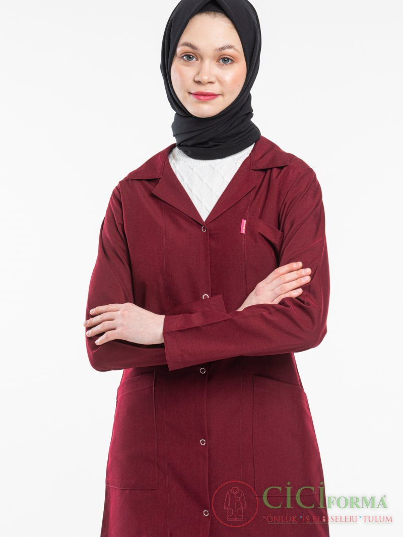 Ceket Yaka Bordo Bayan Önlüğü ( Stok Kodu: Ö )